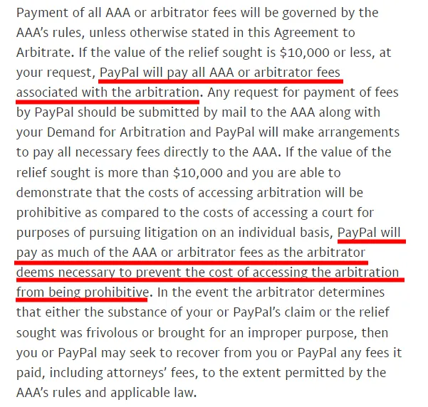 So then I moved to step two, which is demanding arbitration. Maybe the most important thing to say is that for most disputes, PAYPAL WILL COVER THE COST OF ARBITRATION:
