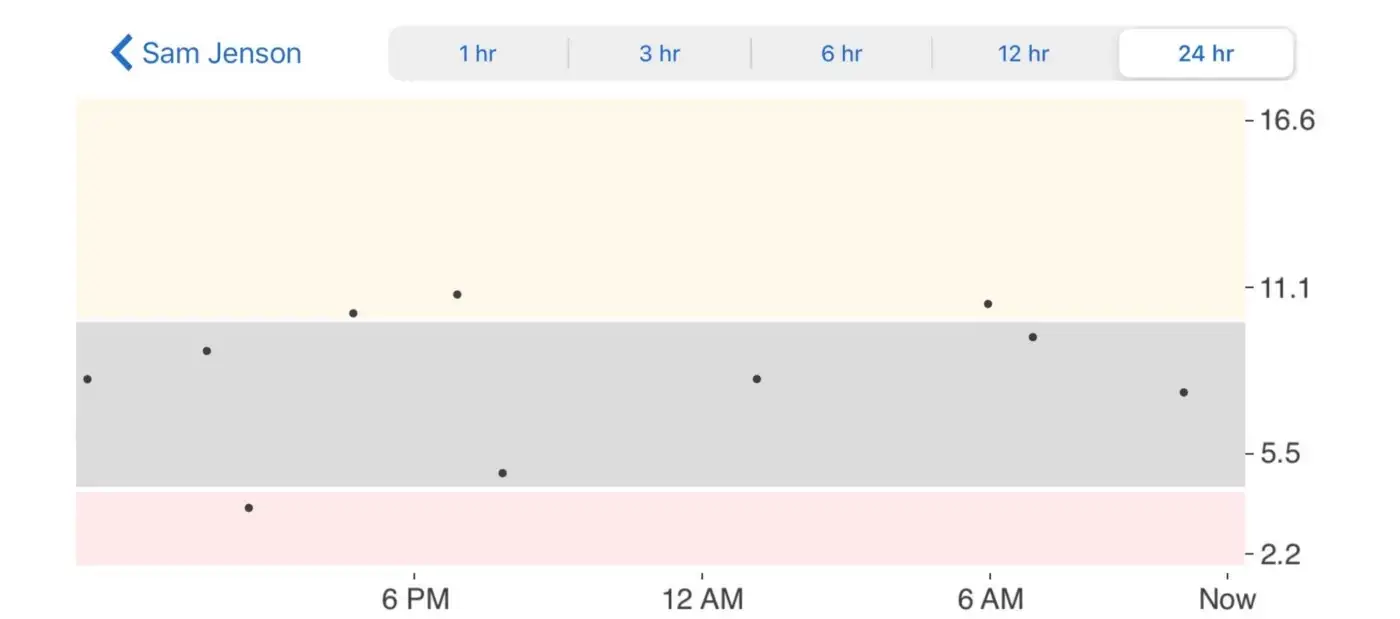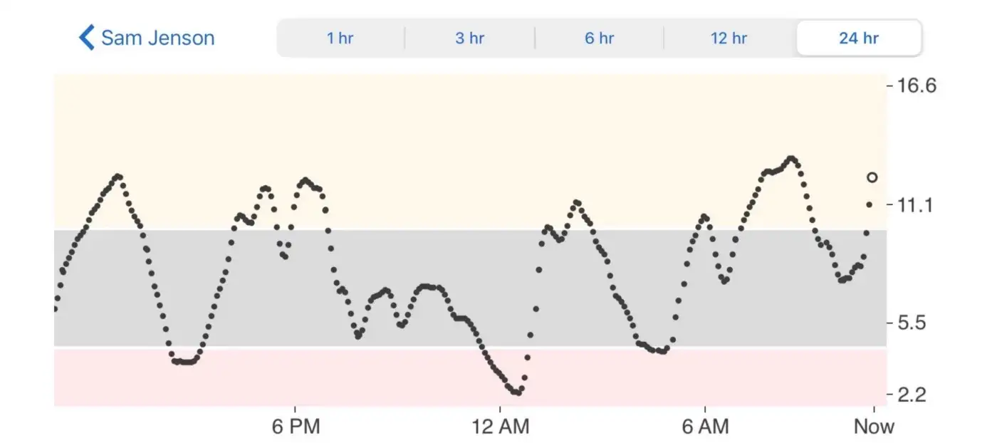 - Sam had wild readings ranging from urgent lows (2.9) to massive highs (20.3) coming out of nowhere and remaining undetected for hours.