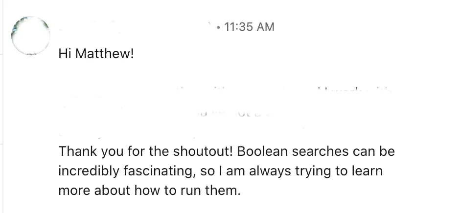 I was later contacted by recruiter who mentioned on her profile that she was good at this kind of highly-skilled Boolean search, and I made sure to give her props for it. I will never underestimate the work of finding potential candidates again!