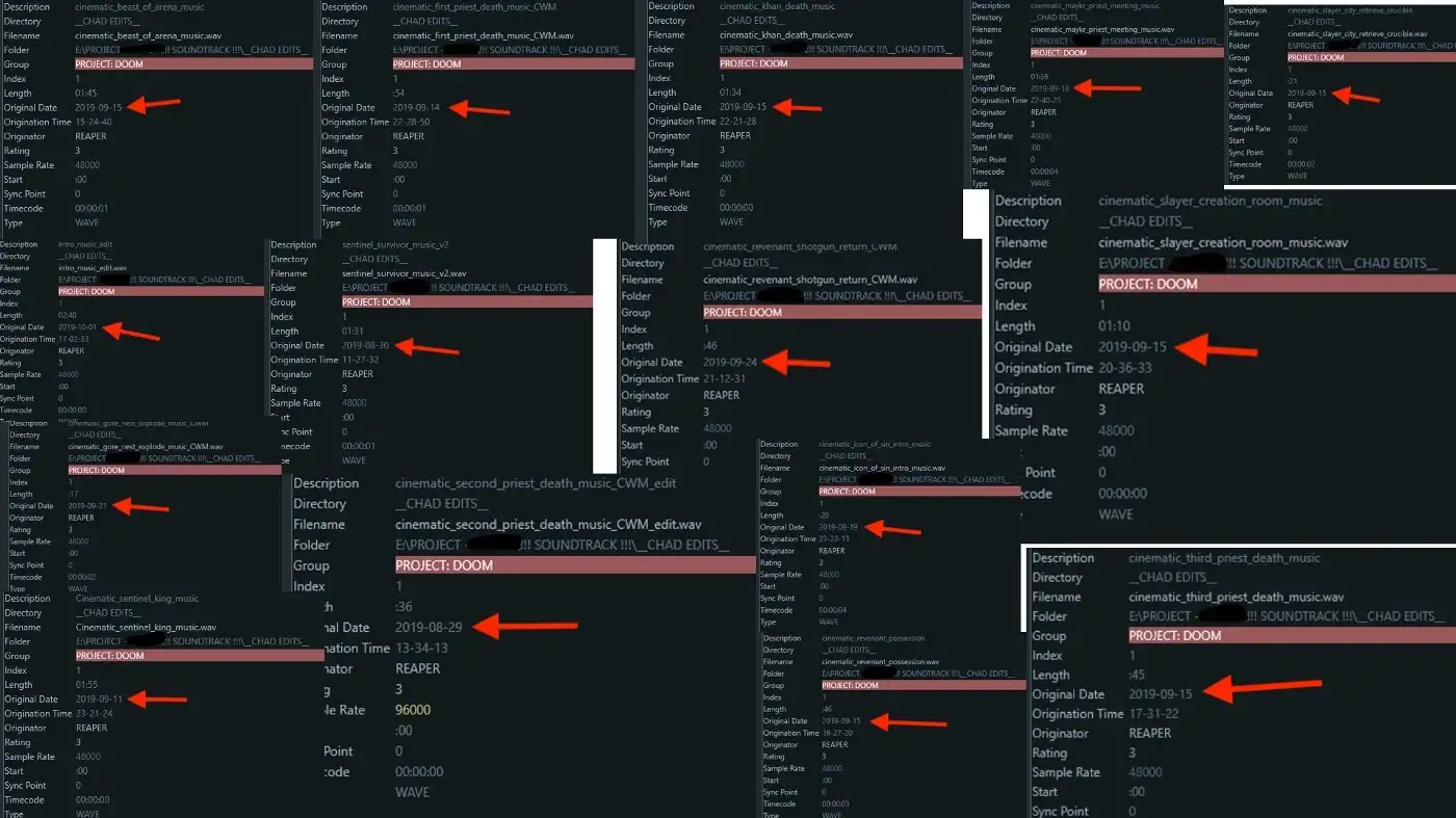 But the BWF metadata tells the true story: Chad sent me a preliminary version of his edited OST one week before my deadline. Metadata within these files show that Chad began working on his version of the OST using Reaper six months earlier when he and Marty were actively excluding me from working on it: