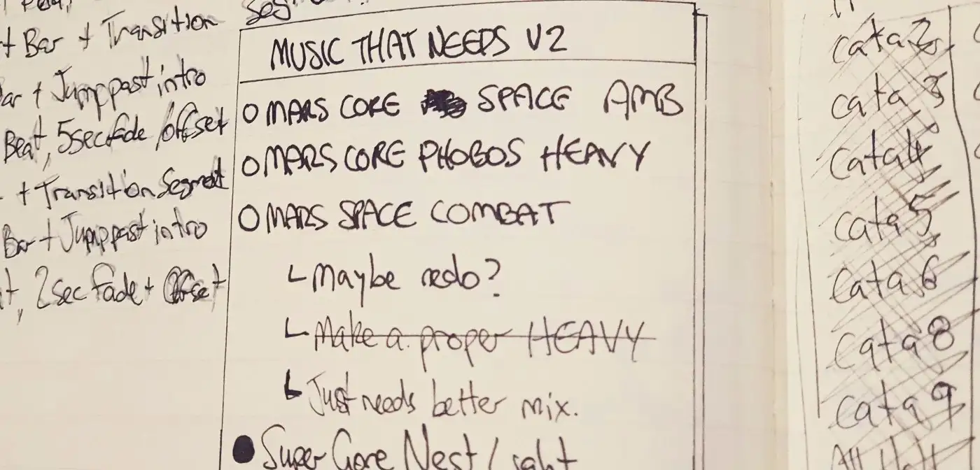 - My plan mirrored a typical approach: first define the overall game’s musical identity by writing strong reusable themes before ramping up production of final music assets when the game’s exact needs become apparent.
