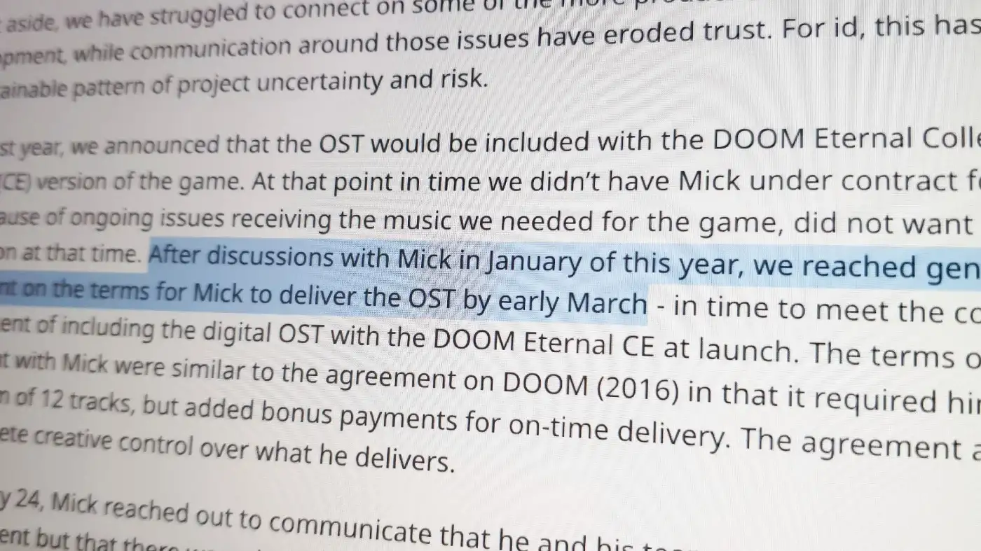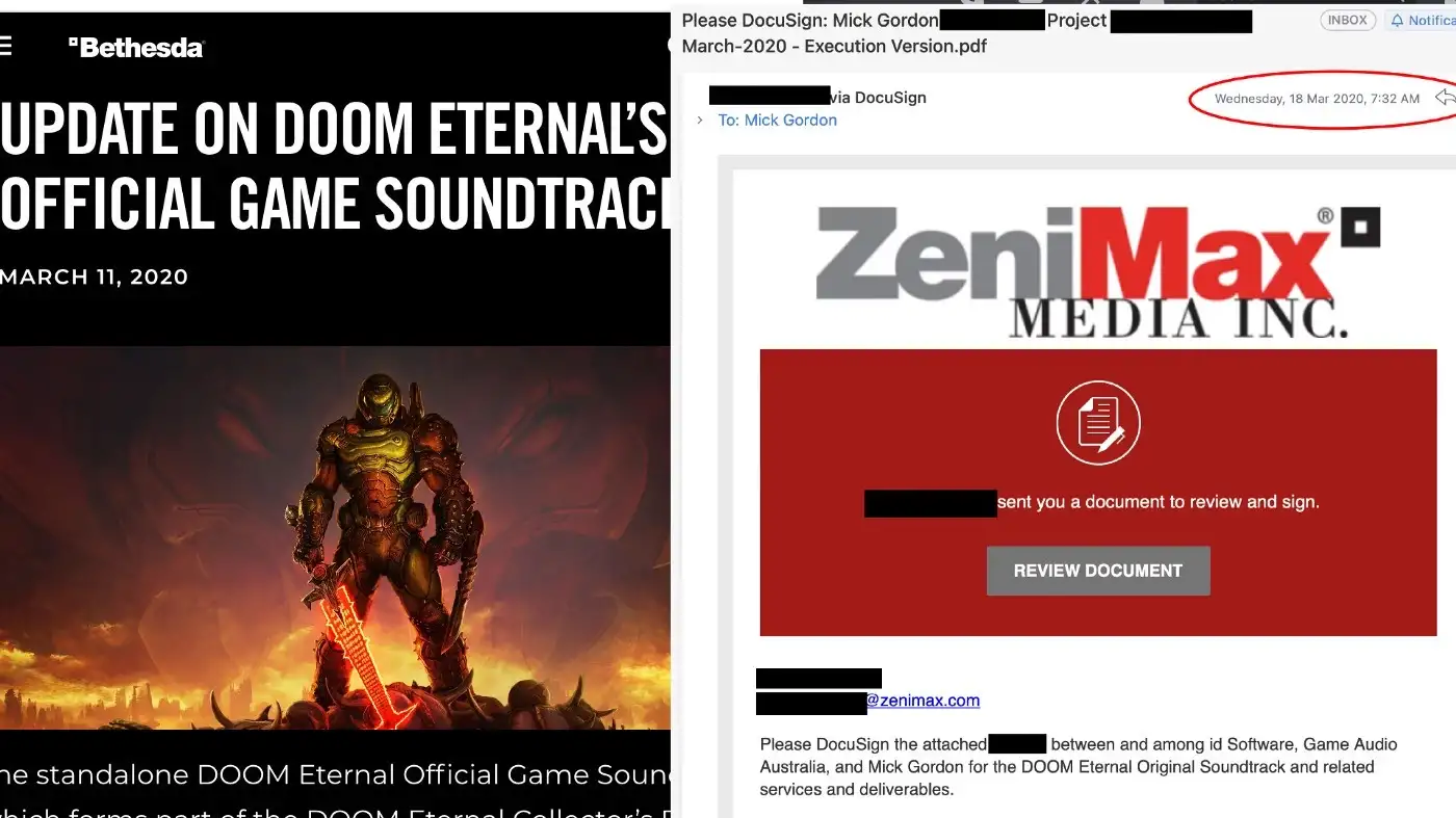 - I received the DOOM Eternal OST contract a week later, on March 18.
