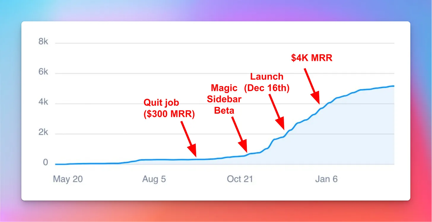 Within a few months, by building, tweeting, and launching the product on Product Hunt, my monthly revenue grew to $4K MRR.