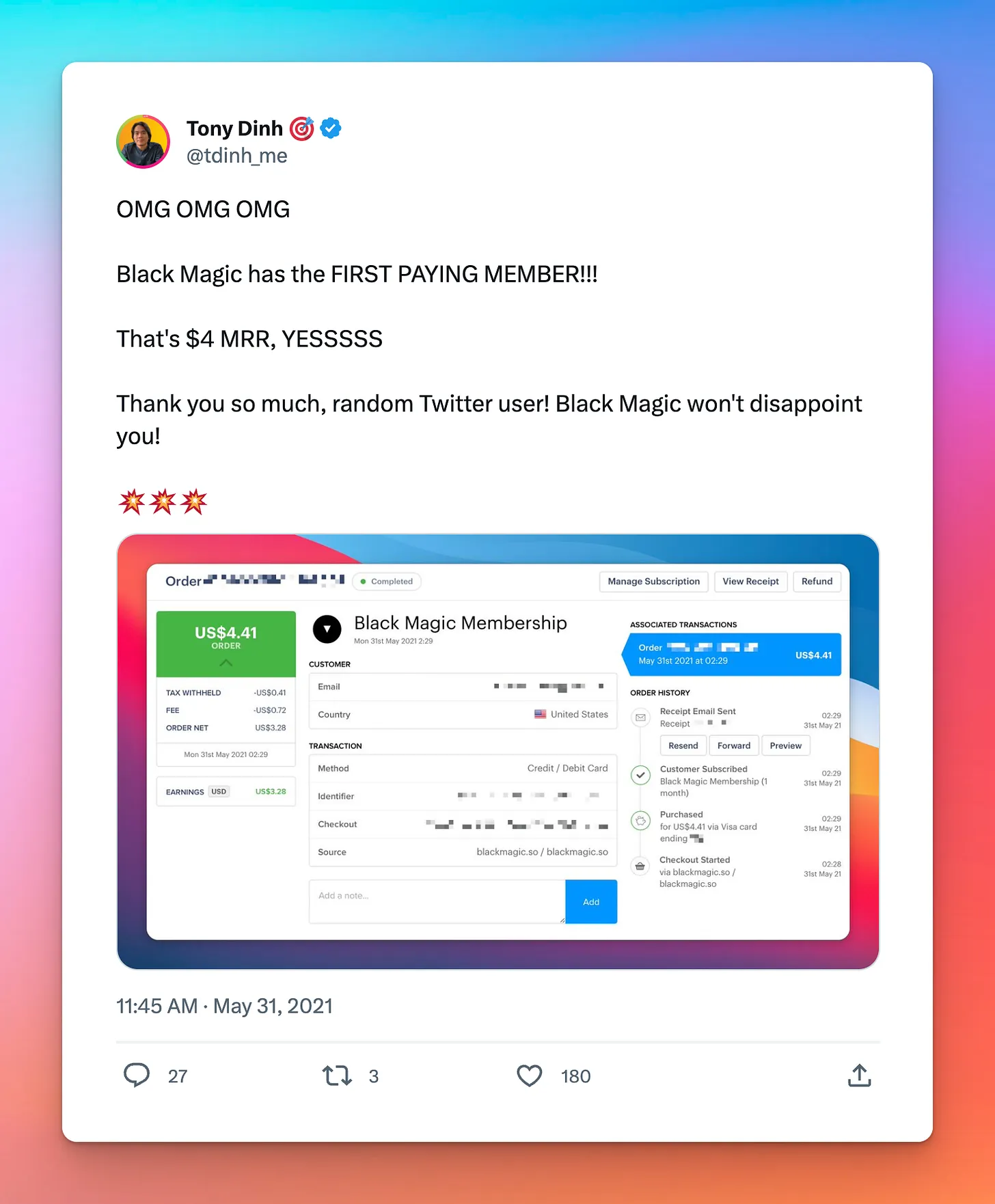 I considered Black Magic to be my first ever “real” business because it has a subscription pricing model with recurring revenue.