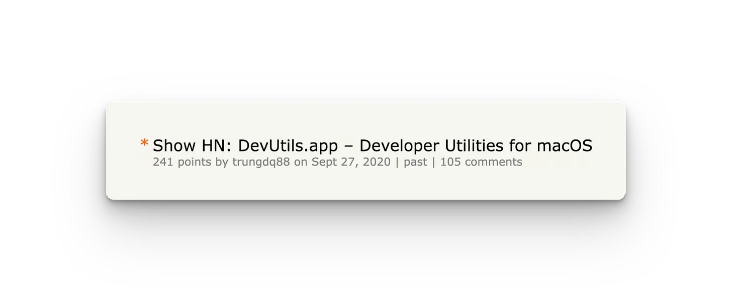I built the first version of DevUtils in about 2 weeks. It’s an app that bundles all the frequently used developer tools into one unified interface that works offline on your macOS.