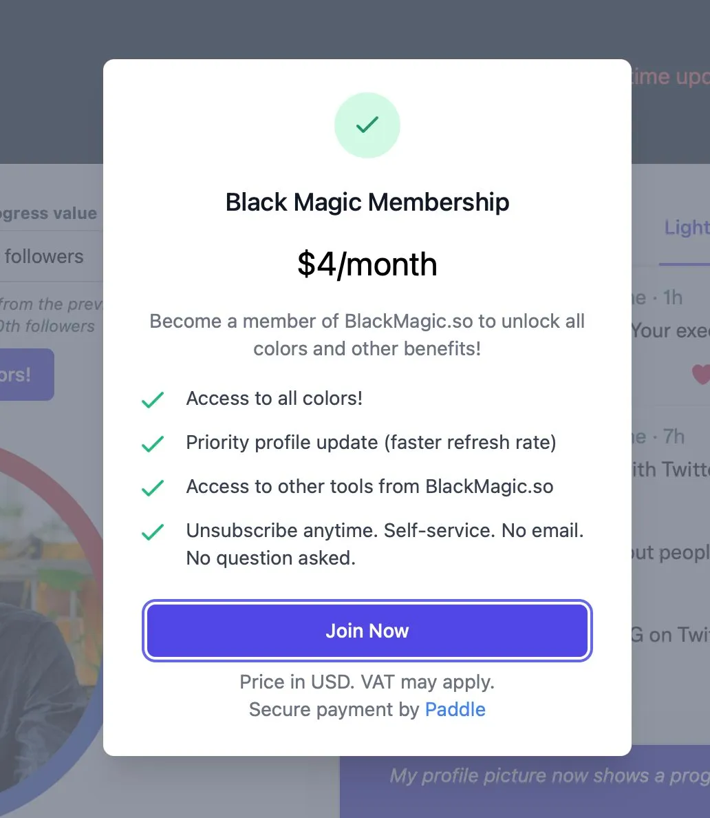 Later, I pivoted the whole product around this feature. I changed the landing page to exclusively talk about this feature instead of the profile progress bar and other fun features. You can see it at BlackMagic.so.