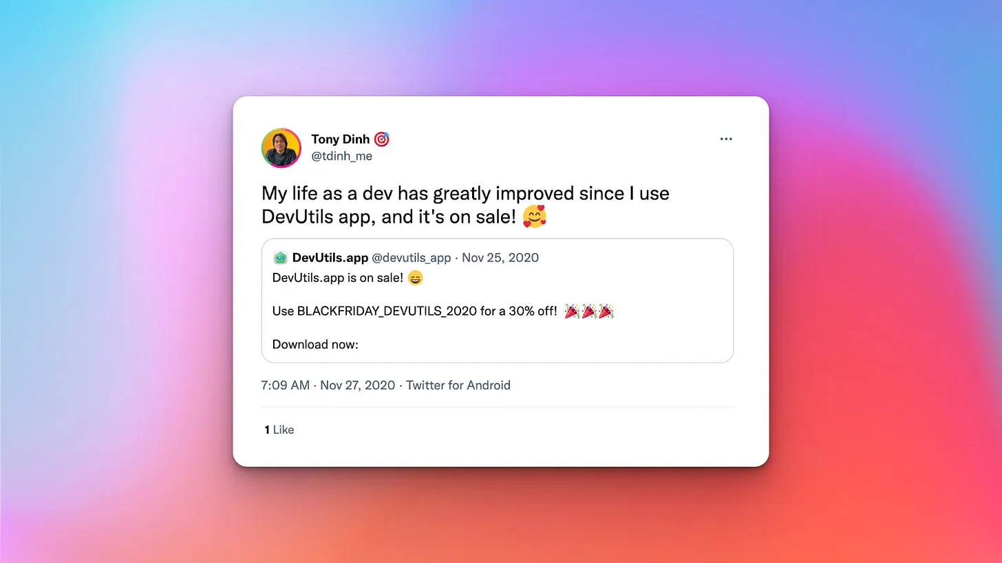 And so, I reactivated my old Twitter account and started building my personal brand. Most of my tweets were about DevUtils and it was quite boring.